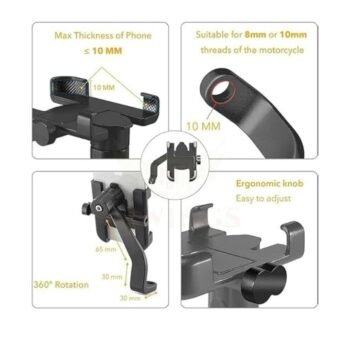 KIN Universal Metal Body Bike Holder With 360 Rotating Mirror for Motorcycle Bike Mobile Holder (Black)