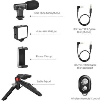 Kin Mobile Vlogging Kit with Microphone ,Tripod Stand and LED Light Kit.