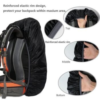 Kin Waterproof & Dustproof Adjustable Elastic Rain Cover with Pouch for School College Office Backpack (30-35L) Black