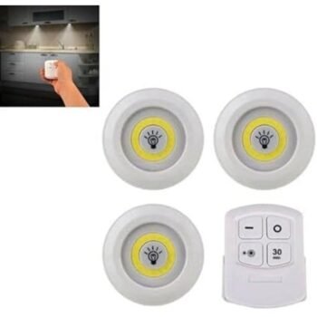 Kin 3 Round Shape LED Cabinet Wireless Lights with Remote Control & Battery Powered Touch Button..