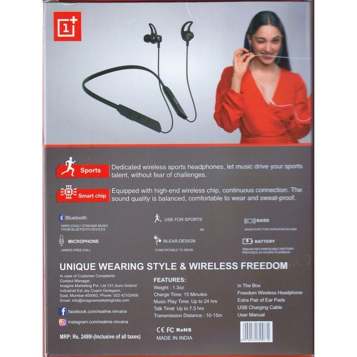 Kin 1+plus Wireless Neckband Playback Battery with Call Vibration Alert Bluetooth Headset  (Grey, In the Ear)