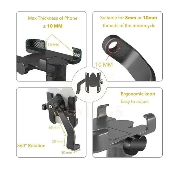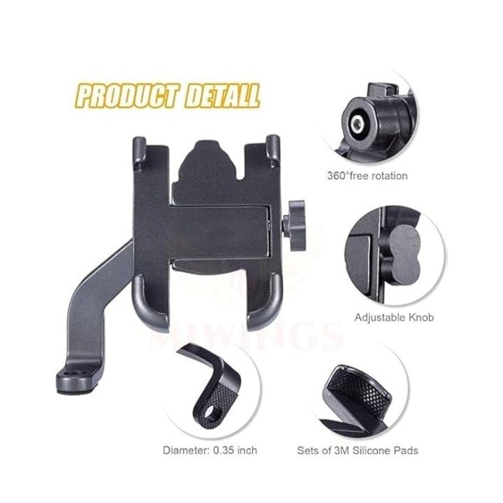 KIN C2 Universal Metal Body 360 Degree Rotating Light weight Anti-Scratch Bike Mobile Holder (Black).
